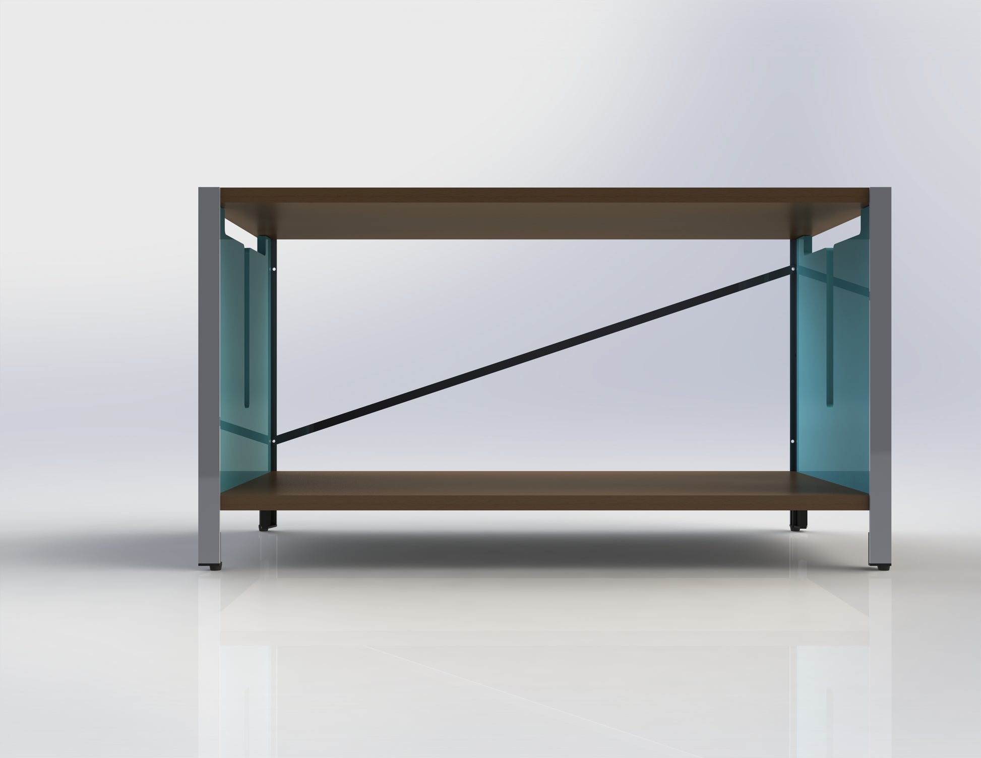 The TEEE shelving system is endlessly customizable and adaptable. Simply email me with your requirements and I will design your system and present a quote. A minimum of two braces per side and one back panel or angle brace per section is required for stability. The angled braces are available in a variety of materials and colours. This S80-54-1A configuration includes the following components: